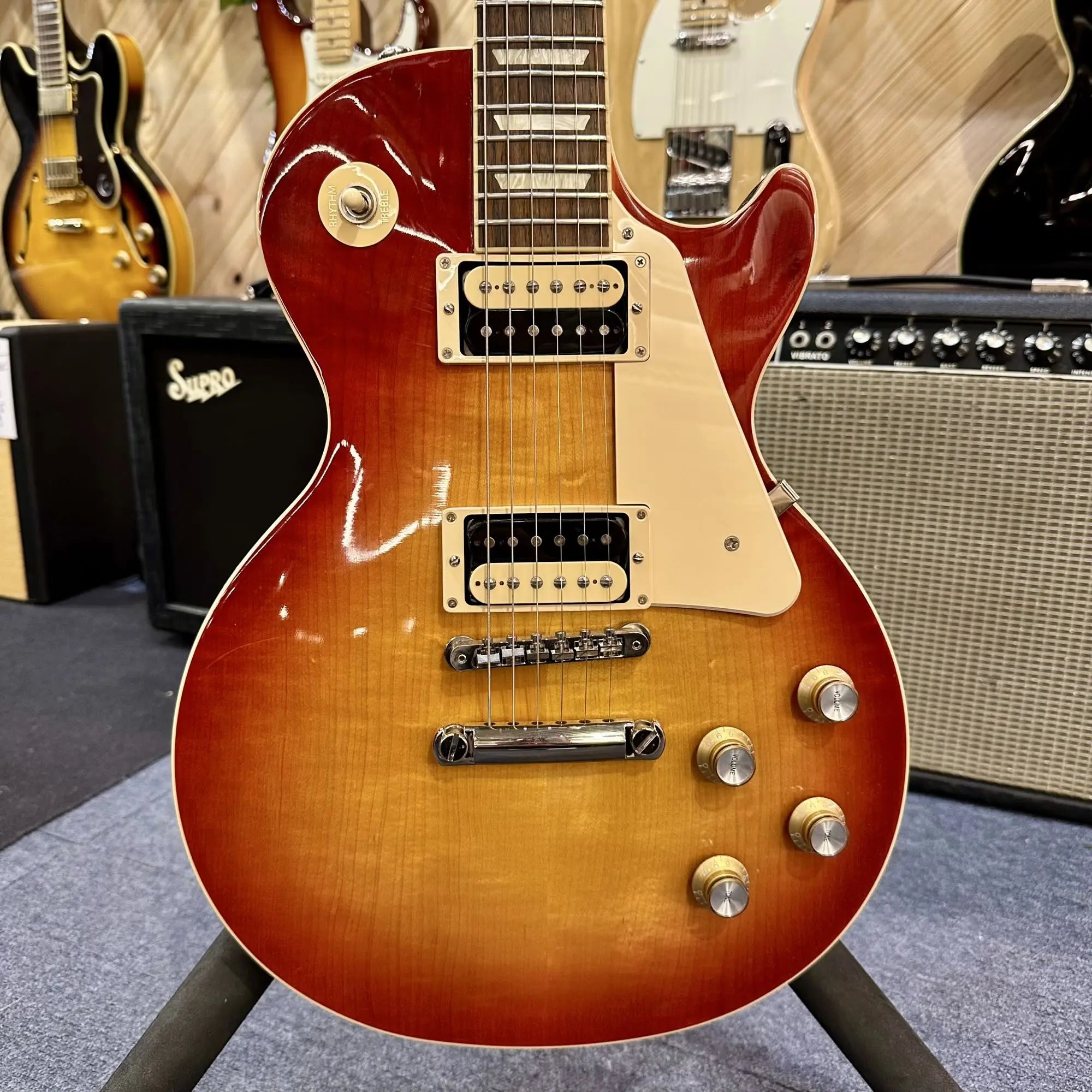 La Gibson Les Paul Classic 2023 Heritage Cherry Sunburst séduit autant par son esthétique que par son caractère sonore. Son corps en acajou associé à une table en érable produit ce mélange unique de chaleur, de rondeur et de sustain qui a construit la réputation des Les Paul. Chaque accord résonne avec profondeur, chaque note s’installe avec naturel.