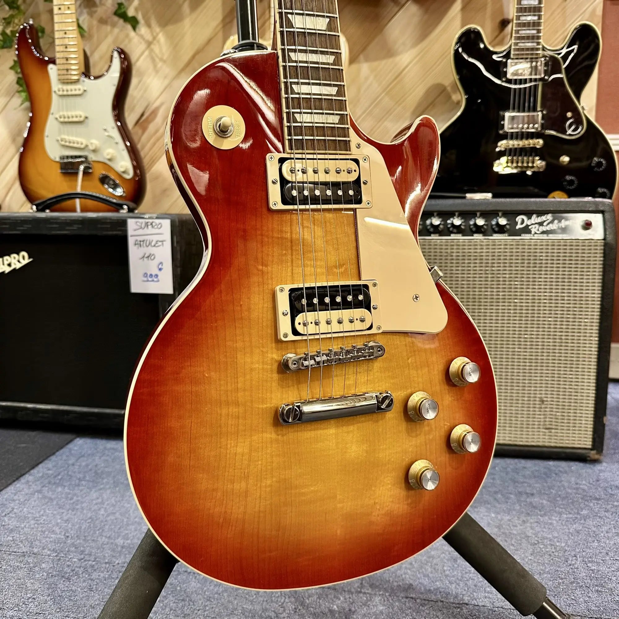 La Gibson Les Paul Classic 2023 Heritage Cherry Sunburst impose immédiatement son caractère avec un son chaud, puissant et une présence qui ne laisse aucune place au doute.