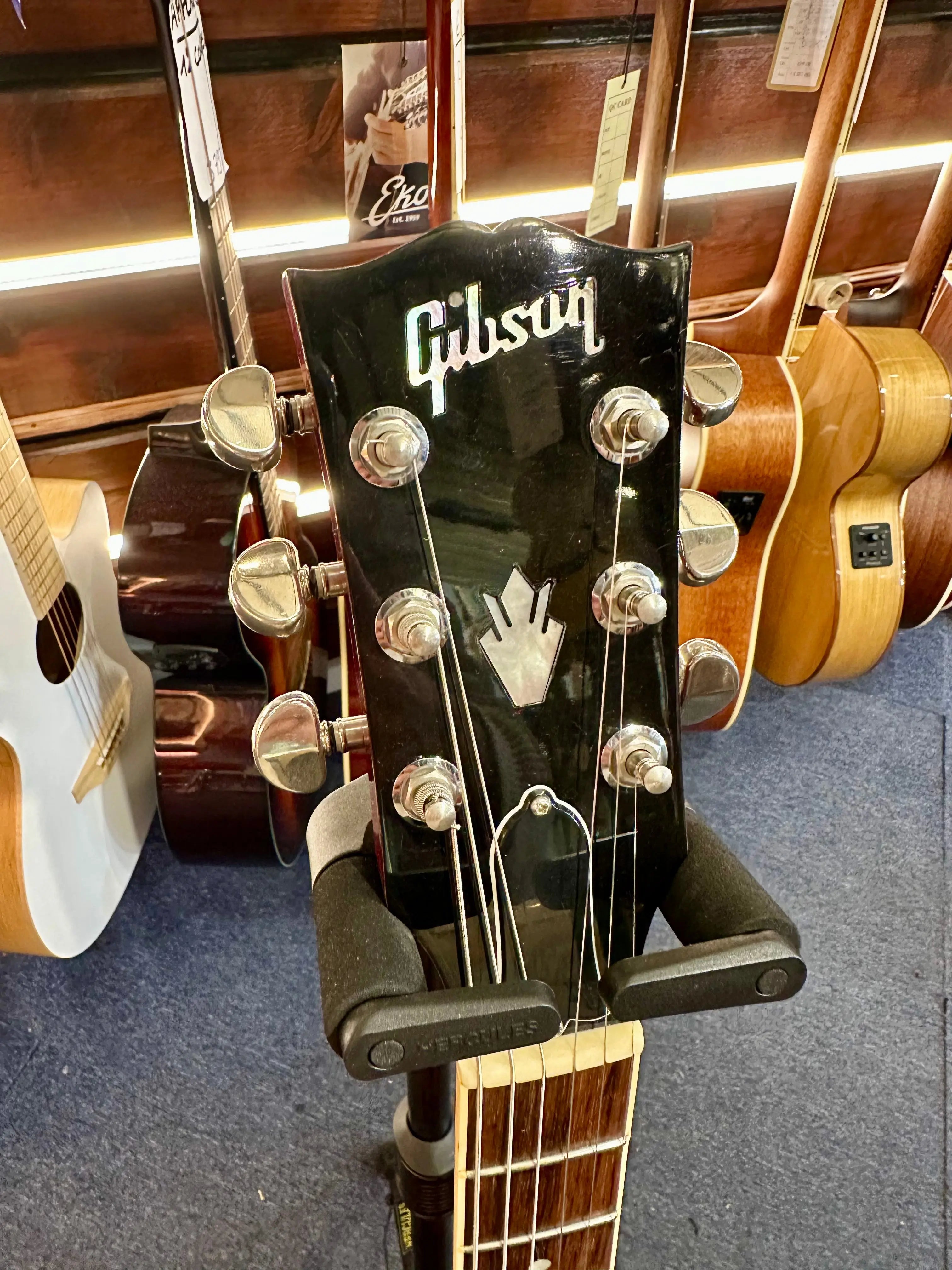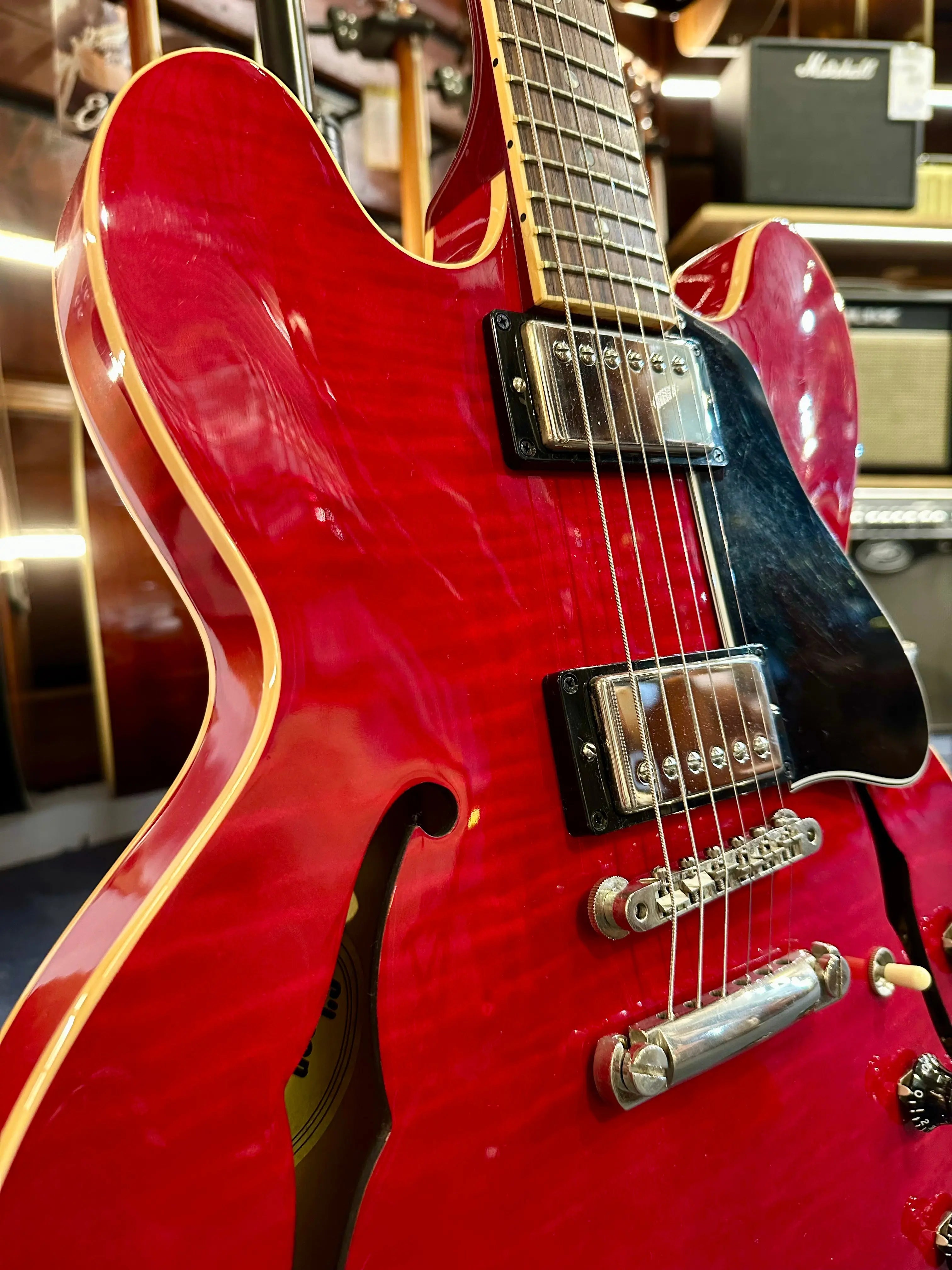 Sa caisse semi-hollow avec bloc central en érable procure une résonance riche tout en maîtrisant parfaitement le larsen. Le manche en acajou, confortable et fluide, permet une jouabilité naturelle sur toute la longueur, idéale pour les accords pleins comme pour les solos chantants. Les humbuckers Gibson délivrent un son ouvert, chaud et expressif, capable de couvrir le jazz, le blues, le rock classique ou la pop avec une grande élégance.