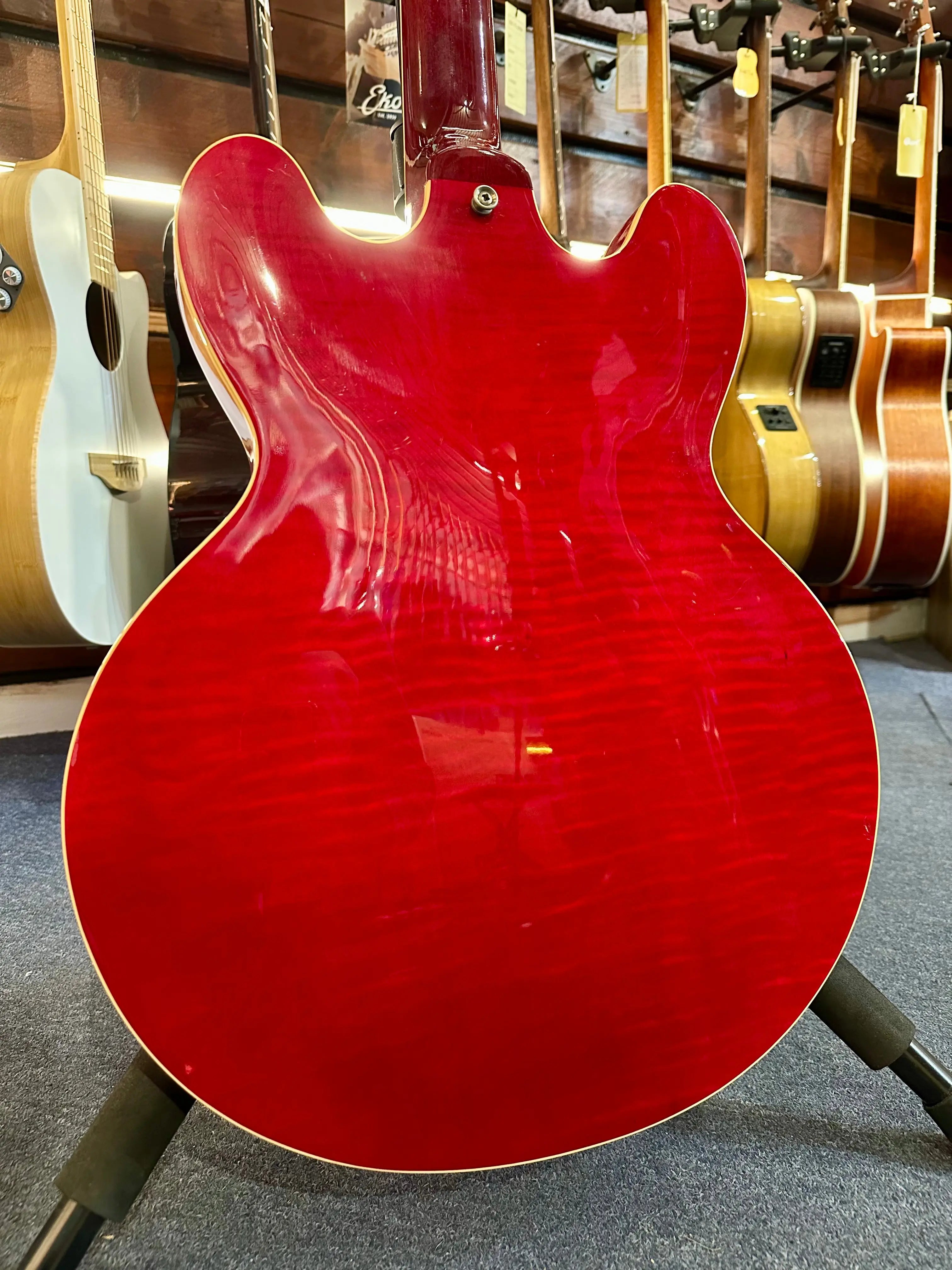 La finition Cherry, profonde et intemporelle, sublime les courbes iconiques de la ES-335 et renforce son aura de guitare de référence. Un instrument de caractère, arrivé à un âge où le bois et le son ont trouvé leur équilibre.
