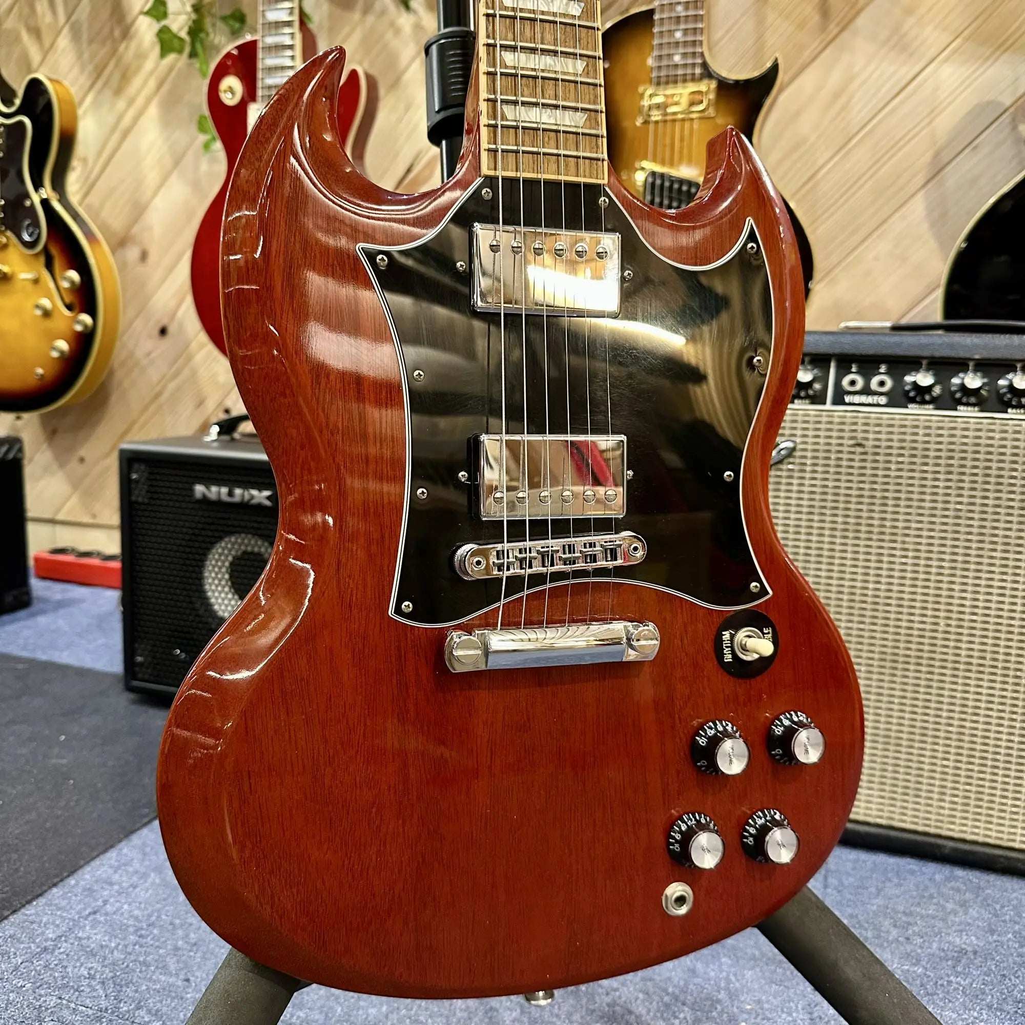 Avec son design iconique et son équilibre parfait en jeu debout, la SG Standard reste une référence intemporelle, aussi à l’aise sur scène qu’en studio.