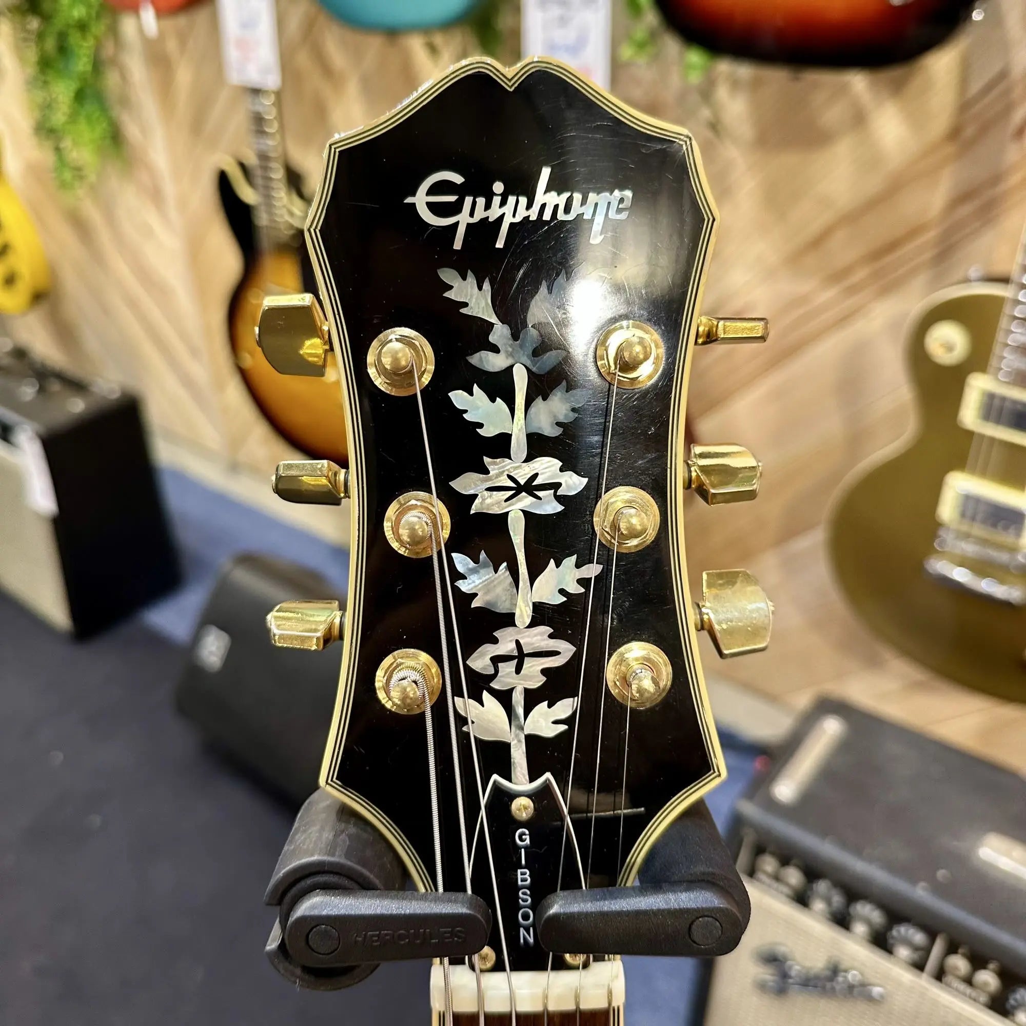 La Epiphone Sheraton fabriquée en Corée à la fin des années 90 fait partie des modèles aujourd’hui les plus recherchés de la marque. Issue d’une période reconnue pour la qualité de fabrication, elle séduit par son équilibre sonore, sa jouabilité confortable et son esthétique intemporelle.