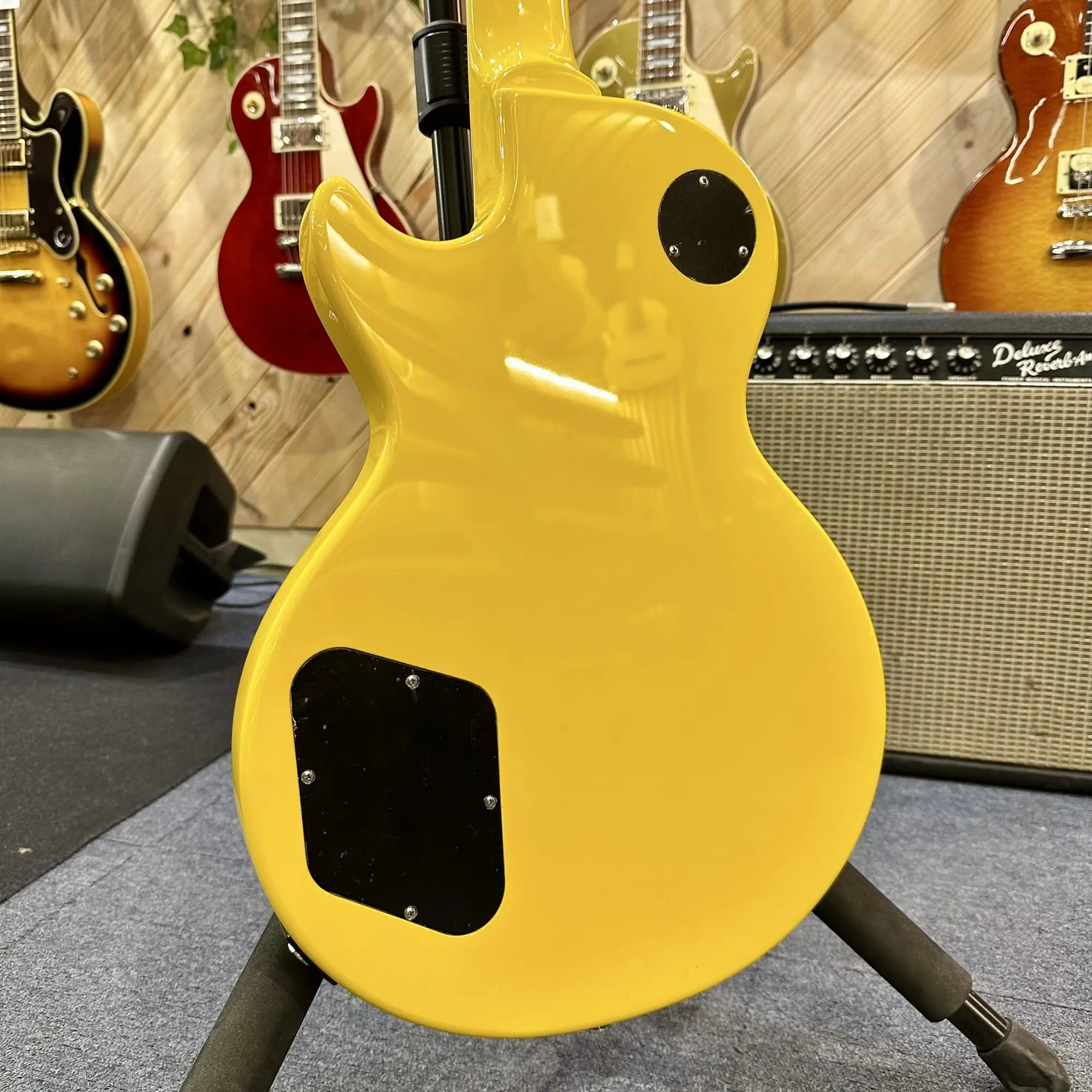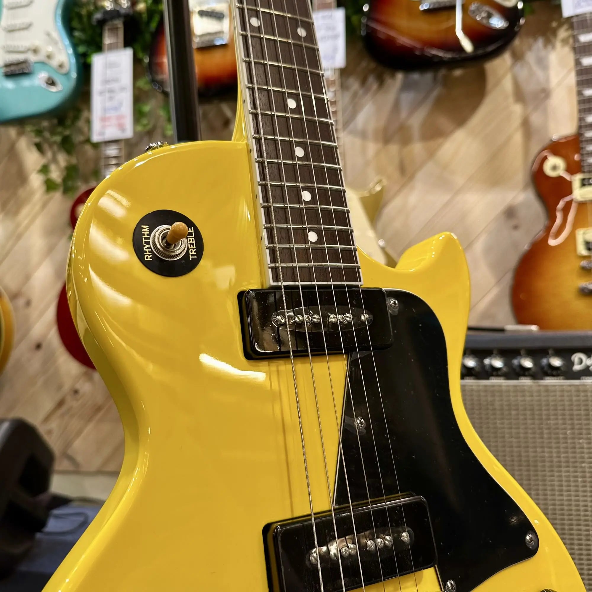 Son corps en acajou délivre une base sonore chaude et résonante, tandis que le manche confortable offre une prise en main naturelle, idéale pour les rythmiques énergiques comme pour les leads incisifs. Les micros P90 apportent ce grain unique, à mi-chemin entre le simple bobinage et le humbucker : attaque franche, médiums présents, saturation nerveuse et expressive.